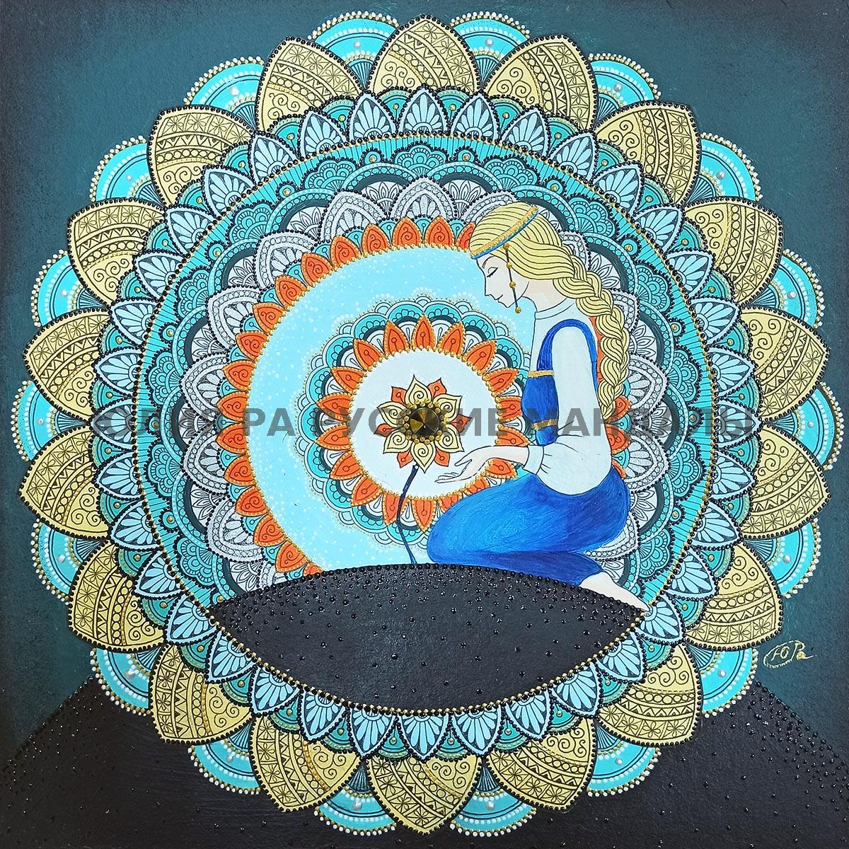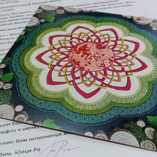 Чаще всего я задумываю образ, начинаю работу... и Мандала сама управляет мной. Она решает, какой будет в конечном варианте. Особенно, если это касается выполнения Мандалы на заказ. Словно Вселенная водит моими руками и управляет моими мыслями. И создается настоящее Волшебство....