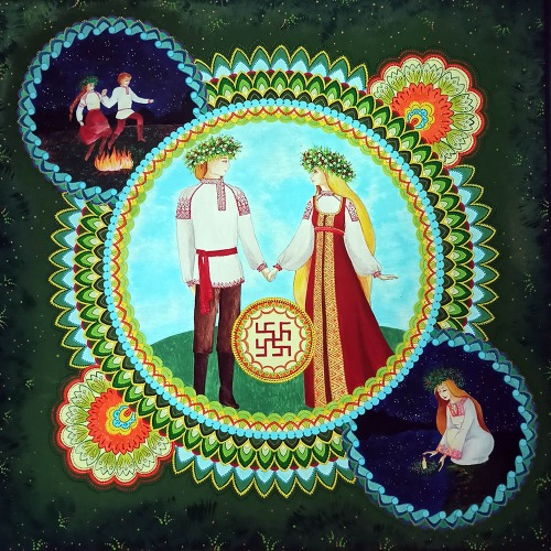 Работа посвящена на мй взгляд одной из красивейших легенд славян о брате и сестре Костроме и Купало. Из этой легенды родился праздник Купало, сюжеты которого здесь тоже изображены.