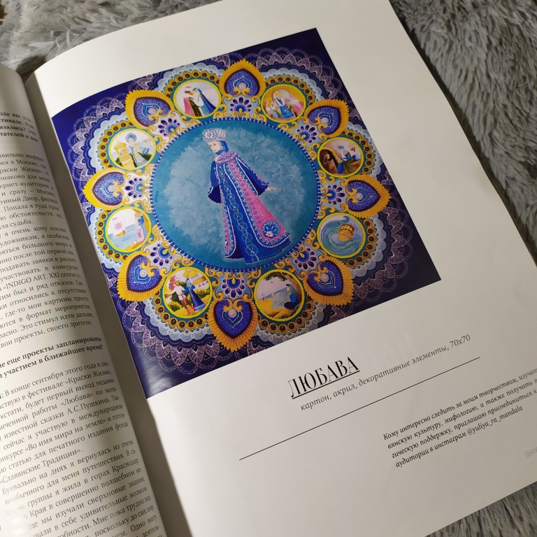 Пожалуй, эту картину можно назвать лучшей за 2019 г.. Работа над ней длилась около 4 месяцев. Я не могла работать больше часа в день. Энергитически опустошала меня основательно. Словно всю мою энергию забирала себе и накапливала в свих узорах