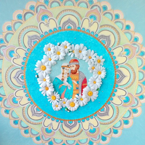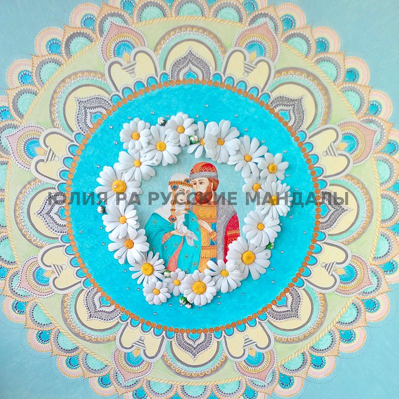 ......Центральные фигуры - известные всем образы Петра и Февроньи. Это символ единения мужчины и женщины, их любви и преданности. Только вместе, доверяя друг другу безгранично, люди способны нести в этот мир настоящую любовь и гармонию.