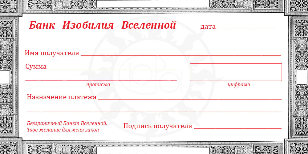Чек Изобилия Вселенной. Люблю эту технику. Мне, как практичному человеку, она импонирует, так как соответствует принципу SMART. Ты видишь цель, знаешь сколько необходимо для ее воплощения, определяешь временные рамки. А волшебство в том, что мы заполняем этот чек для мифического Банка Вселенной.